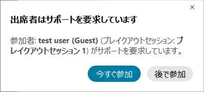 メインミーティングにいるときにブレイクアウトセッションからヘルプが要求されると,ウィンドウがポップアップ表示され,そのセッションに参加することができます.
