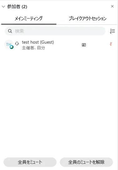 - 参加者の一覧がメインミーティングとブレイクアウトセッションに分かれます.ブレイクアウトセッションには各セッションごとに参加者が一覧表示されます.