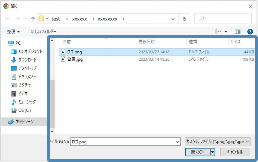 - 利用したいファイルを選択します.「開く」を選択し,ファイルをアップロードします.